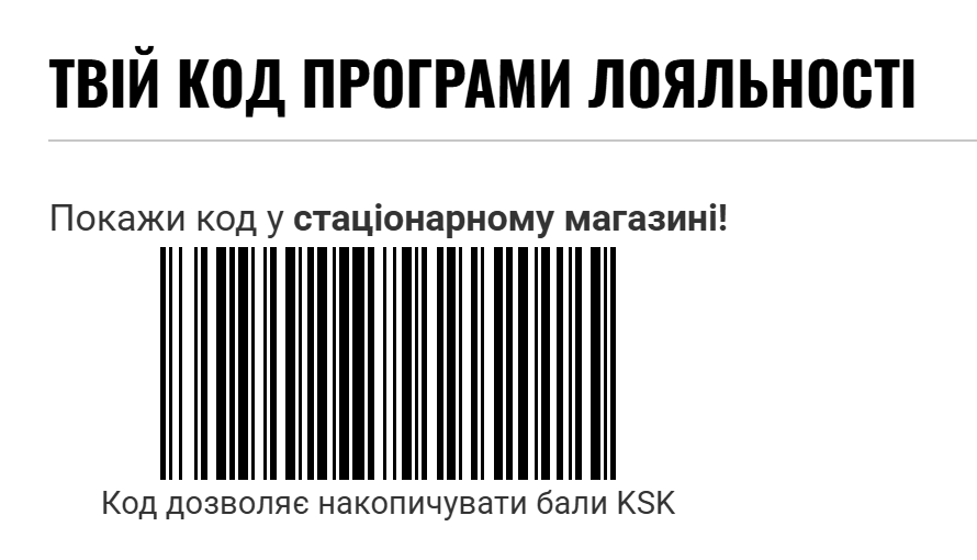 Якщо Ви бажаєте використати свої бали при покупці в одному з наших стаціонарних магазинів, перед покупкою, покажіть код Вашого купона програми лояльності продавцю. Купон програми лояльності необхідний для використання балів у стаціонарних магазинах. Ви знайдете його у своєму обліковому записі поруч з підсумком Ваших балів програми лояльності у вигляді коду на знижку.
