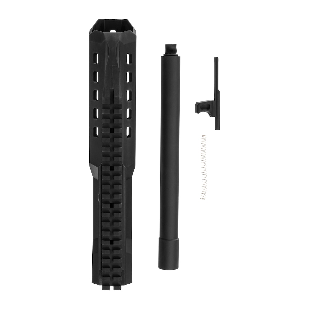 Модель оснащена монтажною системою M-LOK та рейкою RIS 22 мм, які дозволяють встановлювати додаткове тактичне спорядження, таке як лазерні приціли, ліхтарики, сошки чи передні рукоятки.