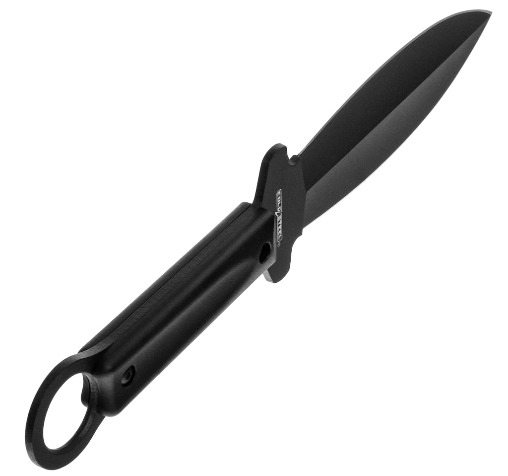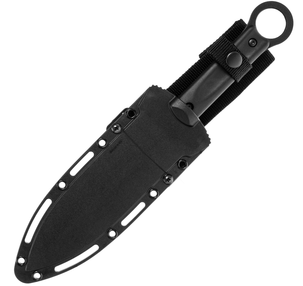 Кинджал з конструкцією Full Tang з хвостовиком клинка, що проходить через всю рукоятку. Виконаний з міцної вуглецевої сталі 1055. Ергономічні облицювання рукоятки виконані з чорного поліпропілену. У комплекті знаходиться кобура в системі Secure-Ex, що дозволяє легко і безпечно зберігати кинджал.