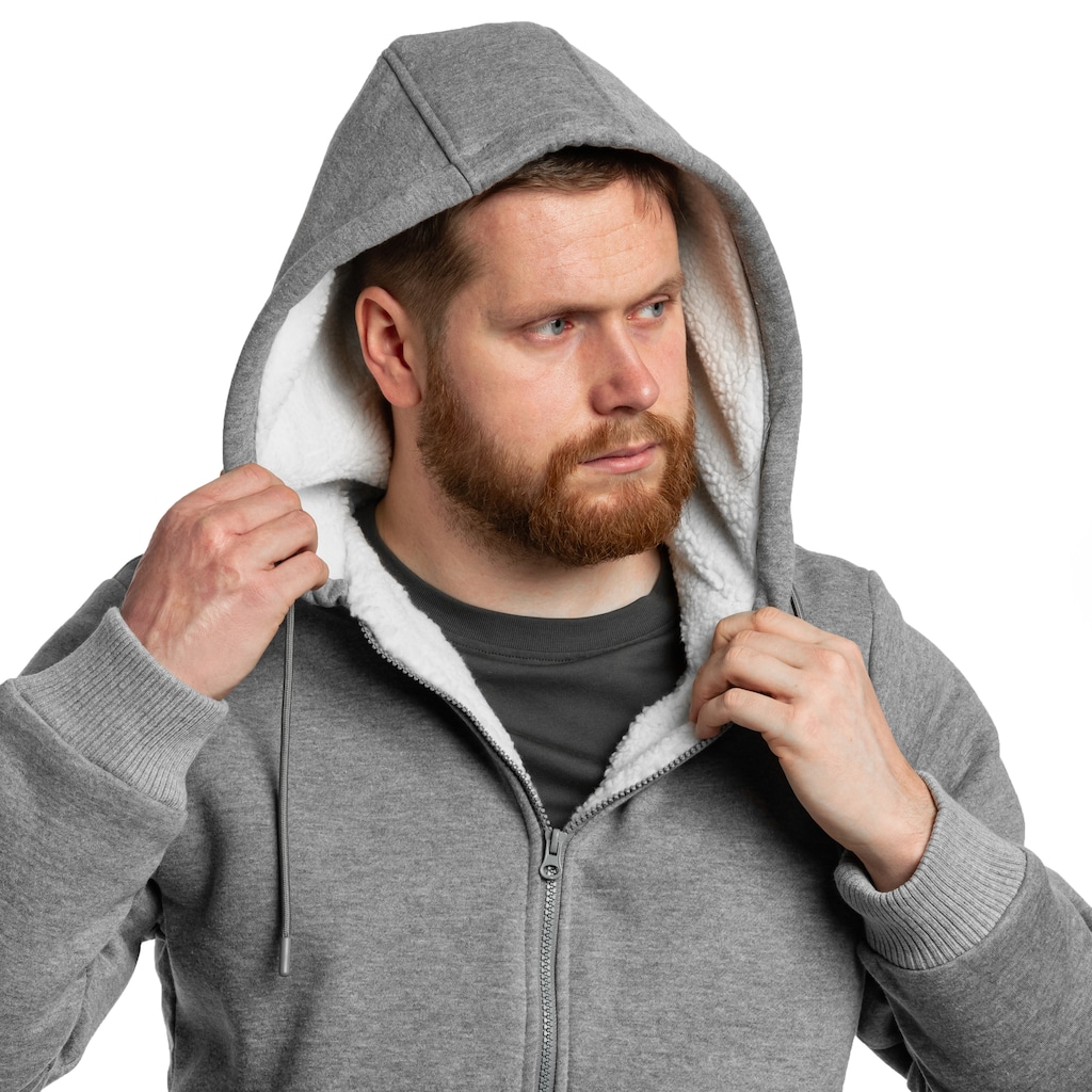 Цілорічна кофта з капюшоном у кольорі Dark Grey Melange, виготовлена з суміші повітропроникної бавовни та міцного поліестеру. Тканина легка, міцна і висихає швидше, ніж 100% бавовна. Зсередини кофта підкладена синтетичним хутром, яке забезпечує дуже хорошу теплоізоляцію. Вільний крій дозволяє одягати додаткові шари одягу, залежно від погодних умов та виду активностей.