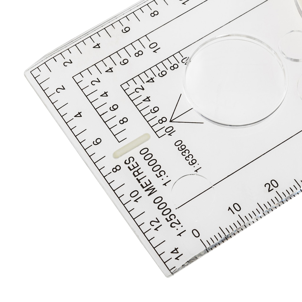 3 різні лінійки дозволяють швидко обчислювати відстані в залежності від масштабу карти. Лінійки адаптовані до трьох популярних масштабів: