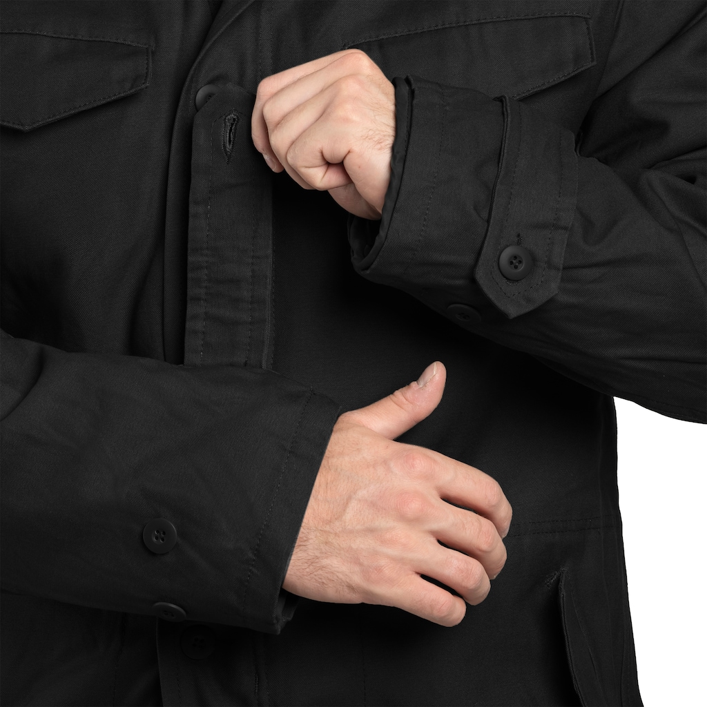 Цілорічна куртка типу парка в кольорі black, що забезпечує високий термокомфорт. Обладнана знімною утепленою підкладкою з синтетичного хутра, ефективно захищає від холоду взимку, а після її зняття підходить також у тепліші місяці. Завдяки продуманій конструкції вона легко адаптується до індивідуальних потреб та змінних погодних умов.