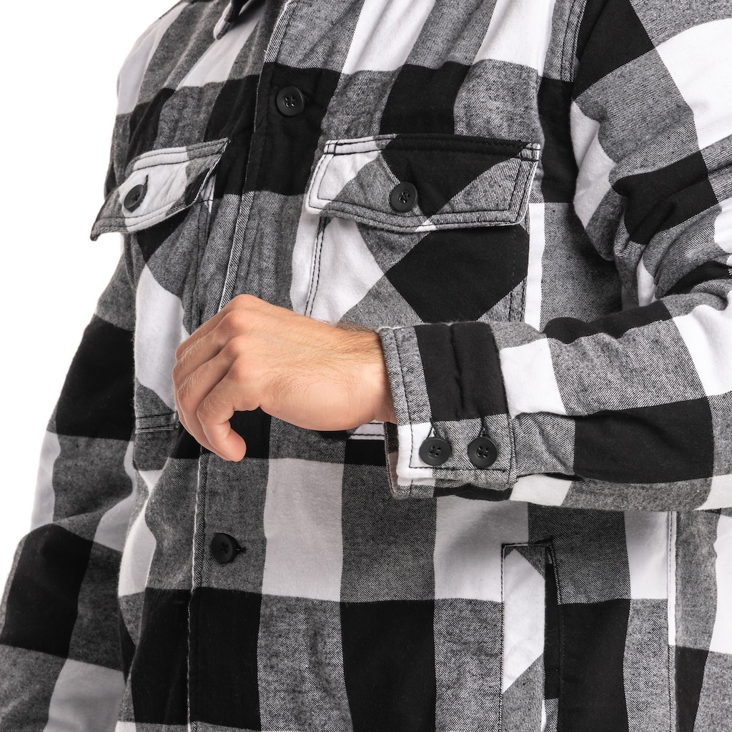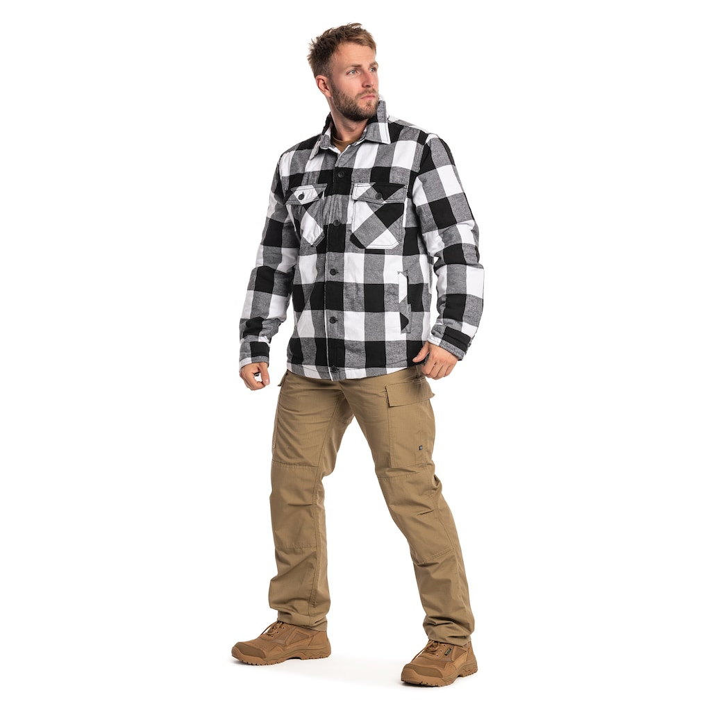 Куртка прямого крою та вигляду заснованому на фланелевій сорочці у кольорах White/Black, зшита з поєднання натуральних і синтетичних волокон. Верхній шар зроблений з міцної та приємної на дотик бавовни. Підкладка з поліестеру, який ефективно захищає від холоду. Підходить як для повсякденного носіння, так і для активностей на свіжому повітрі.