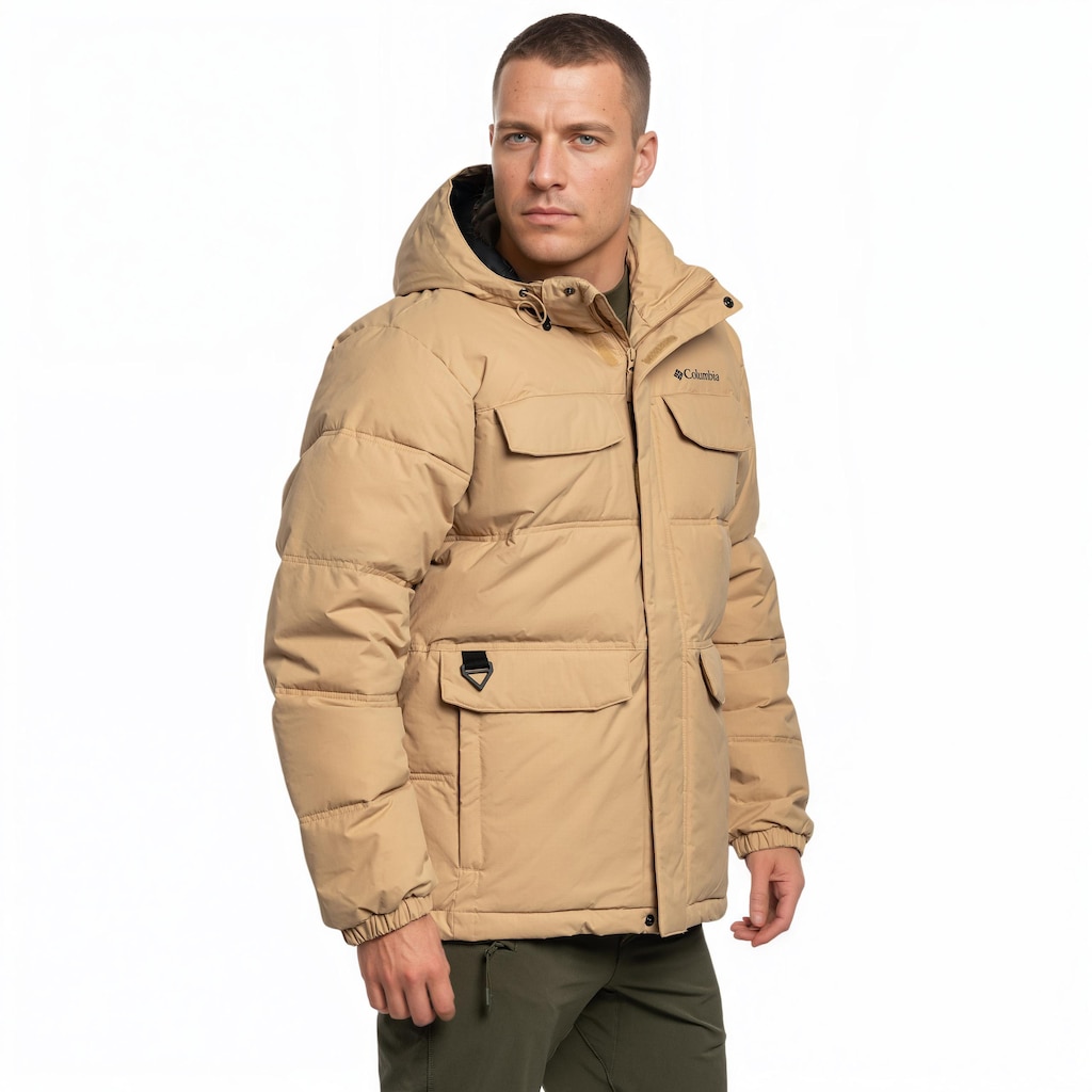 Куртка з капюшоном бежевого кольору, пошита з міцного нейлону за технологіями Omni-Shield та Omni-Heat Infinity. Це хороший вибір для тих, хто шукає легкий, теплий і міцний одяг, який підійде як для повсякденного використання, так і для активного відпочинку на свіжому повітрі в мінливих погодних умовах. Модель поєднує в собі передові технології та високоякісні матеріали, забезпечуючи оптимальний захист, тепловий комфорт та повну свободу рухів.