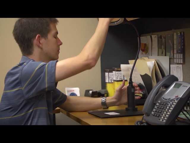 Гнучка рукоятка дозволяє використовувати лупу без допомоги рук і точно позиціонувати лінзу. Стабільність використання гарантується магнітною основою, яка дозволяє розміщувати лупу на плоскій поверхні, або фіксатором, що дозволяє прикріпити її до столу.