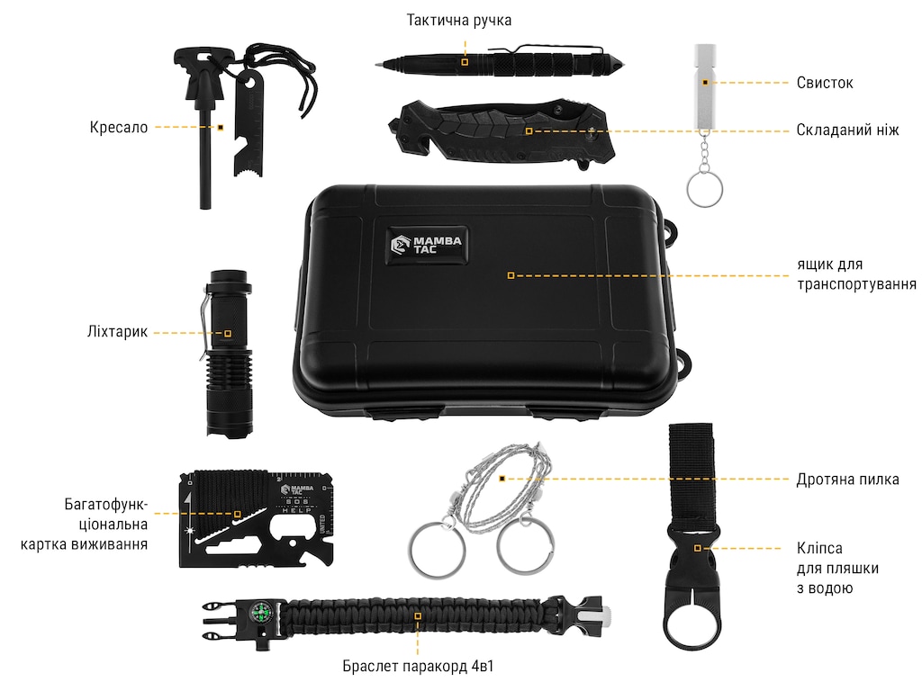 У комплекті Mamba Tac Must Have Survival Kit додатково містяться: