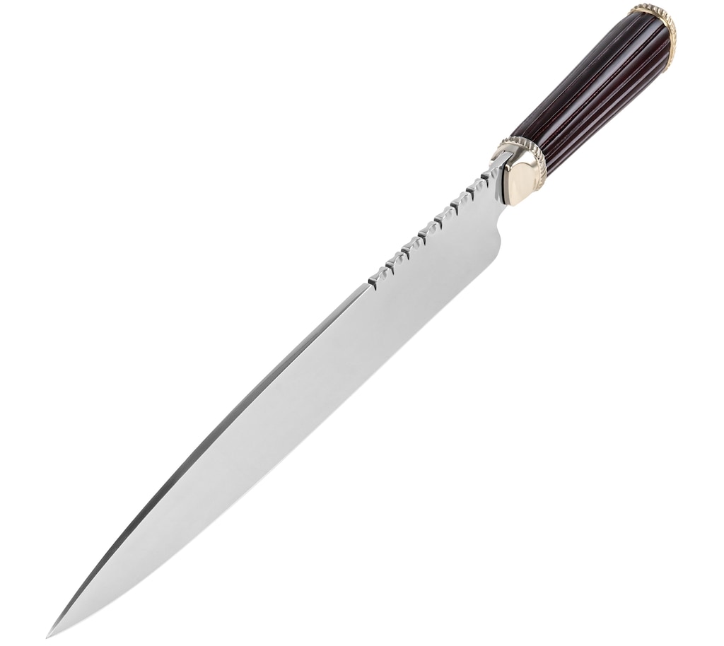 Зручне, міцне, ручне оброблене руків'я виготовлено з екзотичного дерева Sal (damarzyk mocny). Воно оснащене больстером та закінчено декоративною головкою з нікельованої сталі. Насічки на руків'ї та рифлення на обуху клинка (jimping) забезпечують добрий контроль над ножем, навіть у випадку мокрих або забруднених рук.