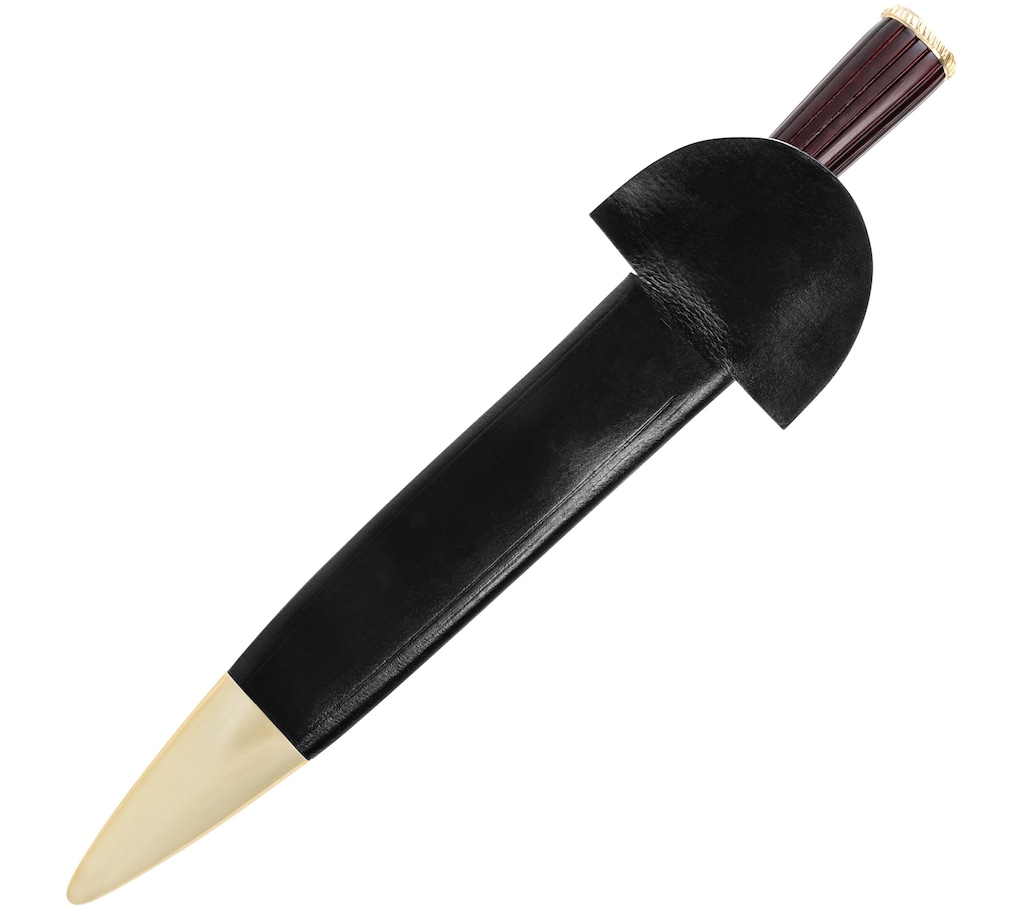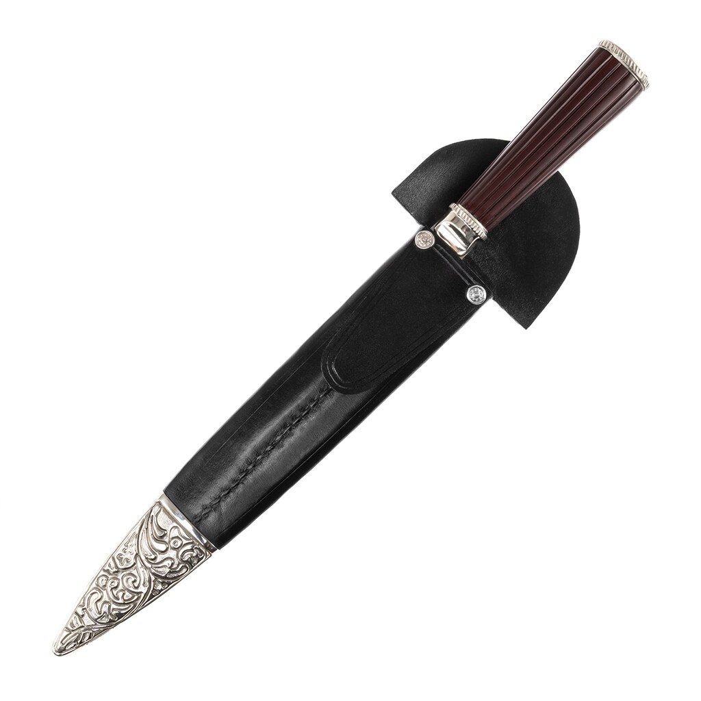 У комплект входить чорна, виготовлена з товстої шкіри піхва, що дозволяє безпечно переносити ніж на поясі. Кобура закінчена декоративним оздобленням з нікельованої сталі.