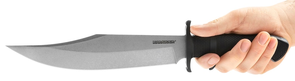 Широкий клинок профілю Bowie має довжину 229 мм і товщину 4,7 мм. Характеризується гладким, закругленим ріжучим краєм, глибоким фальшивим лезом, а його надзвичайна міцність робить Marauder здатним з легкістю різати та проколювати. Лезо виконано плоским шліфом та оброблено методом Stonewash, який надає йому матову поверхню та підвищує стійкість до утворення подряпин.