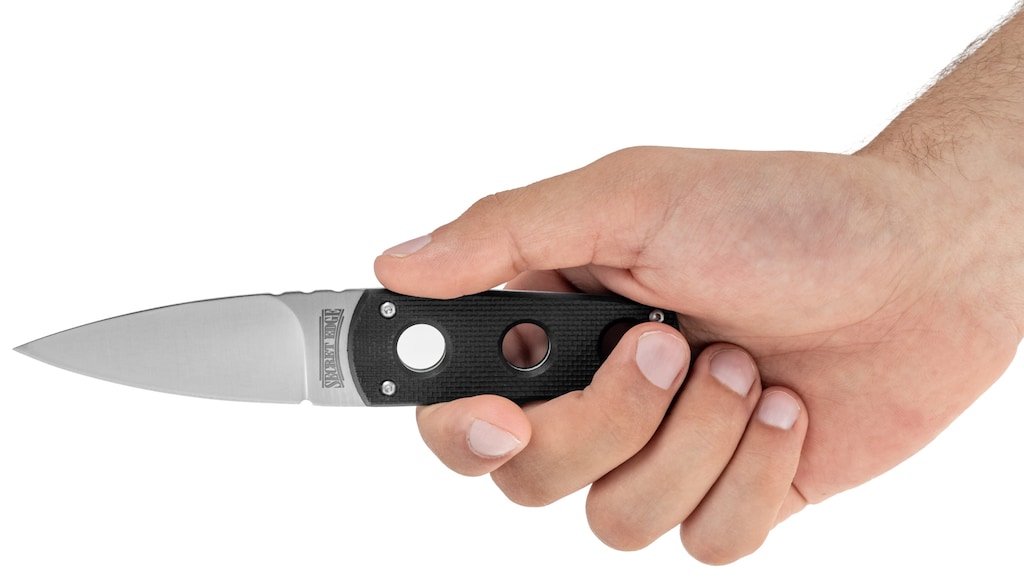 Клинок профілю Spear-Point має 89 мм довжини та 2,5 мм товщини. Відрізняється гладким лезом, яке реалізовано повним плоским шліфуванням. Використана геометрія в поєднанні з невеликою товщиною клинка забезпечують дуже добрі різальні властивості та дозволяють виконувати точні роботи, зберігаючи повний контроль під час проведення різів. Ніж оброблено методом сатинування, який надає сталі напівматову поверхню, забезпечуючи естетичний вигляд і збільшуючи стійкість до подряпин. На обуху клинка є насічка, що дозволяє опертися великому пальцю (jimping).