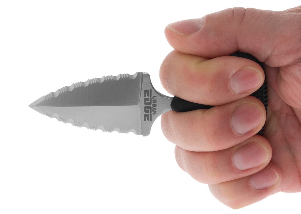 Ніж типу push-dagger з хватом "T", тобто з руків'ям, встановленим перпендикулярно до леза, призначений для тактичних застосувань та самозахисту. Зубчасте лезо з профілем кинджала виконано з японської нержавіючої сталі AUS-8A і оброблено методом сатинування, що надає йому напівматову поверхню. Руків'я виготовлено з чорного матеріалу Kray-Ex, що забезпечує надійний і стабільний хват. До комплекту входить піхви в системі Secure-Ex та ланцюжок, який дозволяє носити ніж, наприклад, на шиї або при ремені.