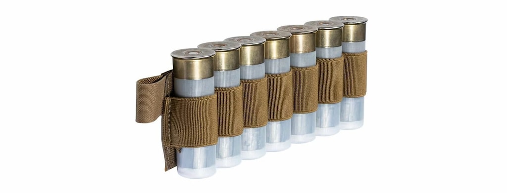 Панель коричневого кольору, призначена для безпечного зберігання та транспортування 7 набоїв для рушниці 12 калібру або інших предметів подібних розмірів. Модель поєднує простоту використання з міцною конструкцією та швидким кріпленням. Виготовлена з міцного матеріалу Cordura, стійкого до зношування в складних польових умовах.