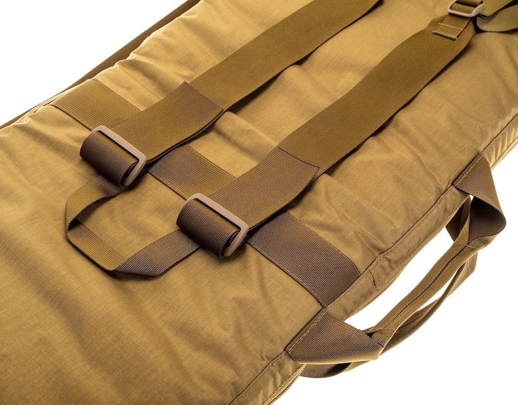 Чохол в кольорі Coyote призначений для перенесення зброї з довгим стволом. Він виготовлений з стійкої до пошкоджень Cordury 500D. Обладнаний перегородкою, що дозволяє транспортувати дві штуки зброї. Продукт має 2-річну гарантію виробника.