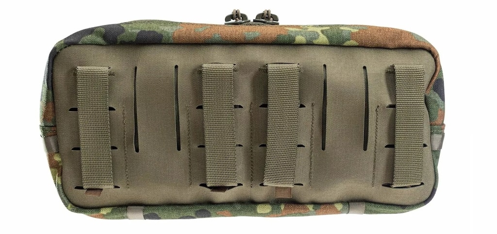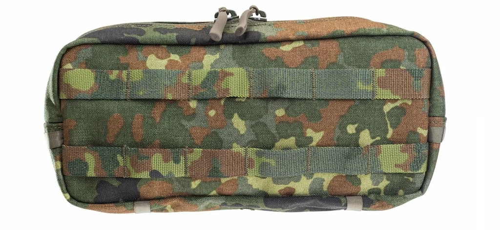 Горизонтальний універсальний підсумок в камуфляжі Flecktarn, виготовлений з міцного і стійкого до розривів матеріалу Cordura і ламінату MX. Завдяки великим розмірам, він підійде для перенесення великої кількості спорядження. Система кріплення MOLLE/PALS дозволяє прикріпити підсумок до поясу, жилета, рюкзака або інших елементів спорядження.