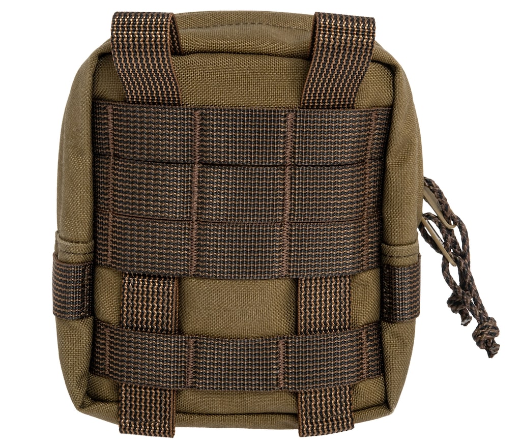 Задня стінка підсумка сумісна з системою MOLLE/PALS, що дозволяє надійно закріпити його на жилеті, ремені або рюкзаку. Бічні стрічки PALS дозволяють прикріпити додаткове спорядження. Застосовані рішення забезпечують повну гнучкість конфігурації та сумісність з іншими елементами спорядження.