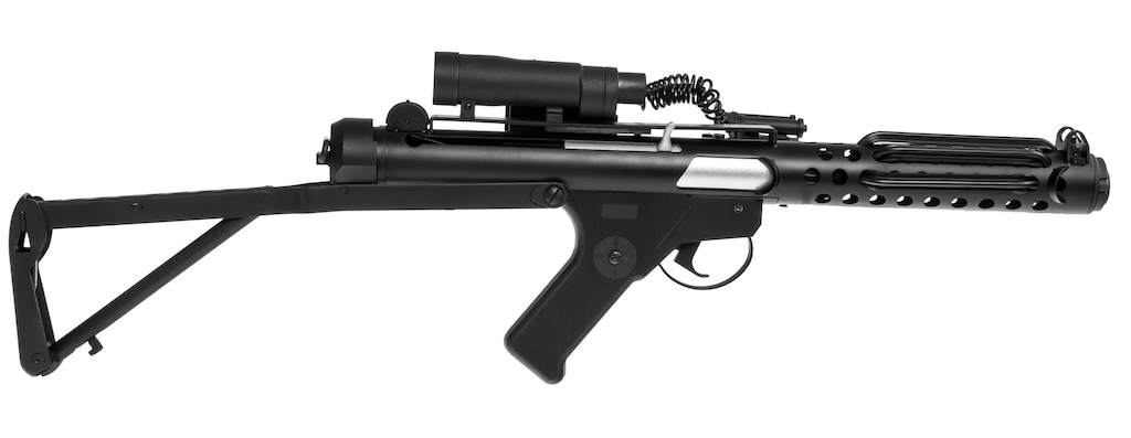 Електрична репліка пістолета-кулемета, відома за культовою серією фільмів Star Wars. Характеризується сталевою конструкцією, що забезпечує їй підвищену механічну міцність. Розроблена з урахуванням динамічного ігрового процесу та повного контролю над пострілами. Підійде для ігор у стилі CQB або як запасна зброя для снайперів та операторів підтримки.