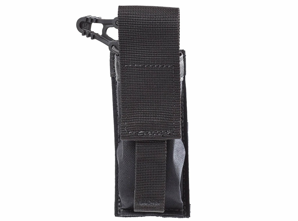 Компактний підсумок чорного кольору, призначений для одного дворядного магазину калібру 9 мм. Виготовлений з поєднання матеріалу Cordura та ламінату MX, який характеризується високою стійкістю до стирання і механічних пошкоджень. Система кріплення MOLLE/PALS дозволяє прикріпити підсумок до жилета або тактичного пояса. Він також підходить для перенесення ліхтарика, мультитула або інших аксесуарів подібних розмірів.