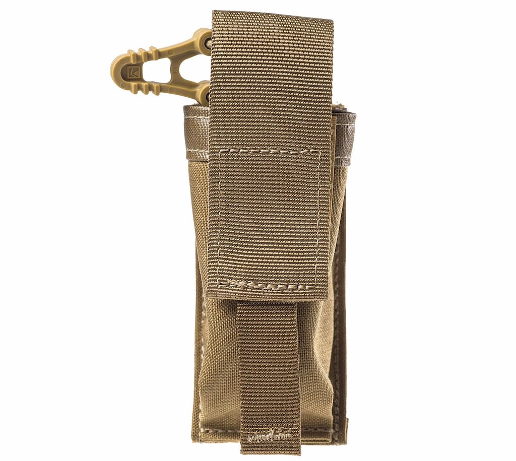Компактний підсумок кольору Coyote, призначений для одного дворядного магазину калібру 9 мм. Виготовлений з поєднання матеріалу Cordura та ламінату MX, який характеризується високою стійкістю до стирання і механічних пошкоджень. Система кріплення MOLLE/PALS дозволяє прикріпити підсумок до жилета або тактичного пояса. Він також підходить для перенесення ліхтарика, мультитула або інших аксесуарів подібних розмірів.