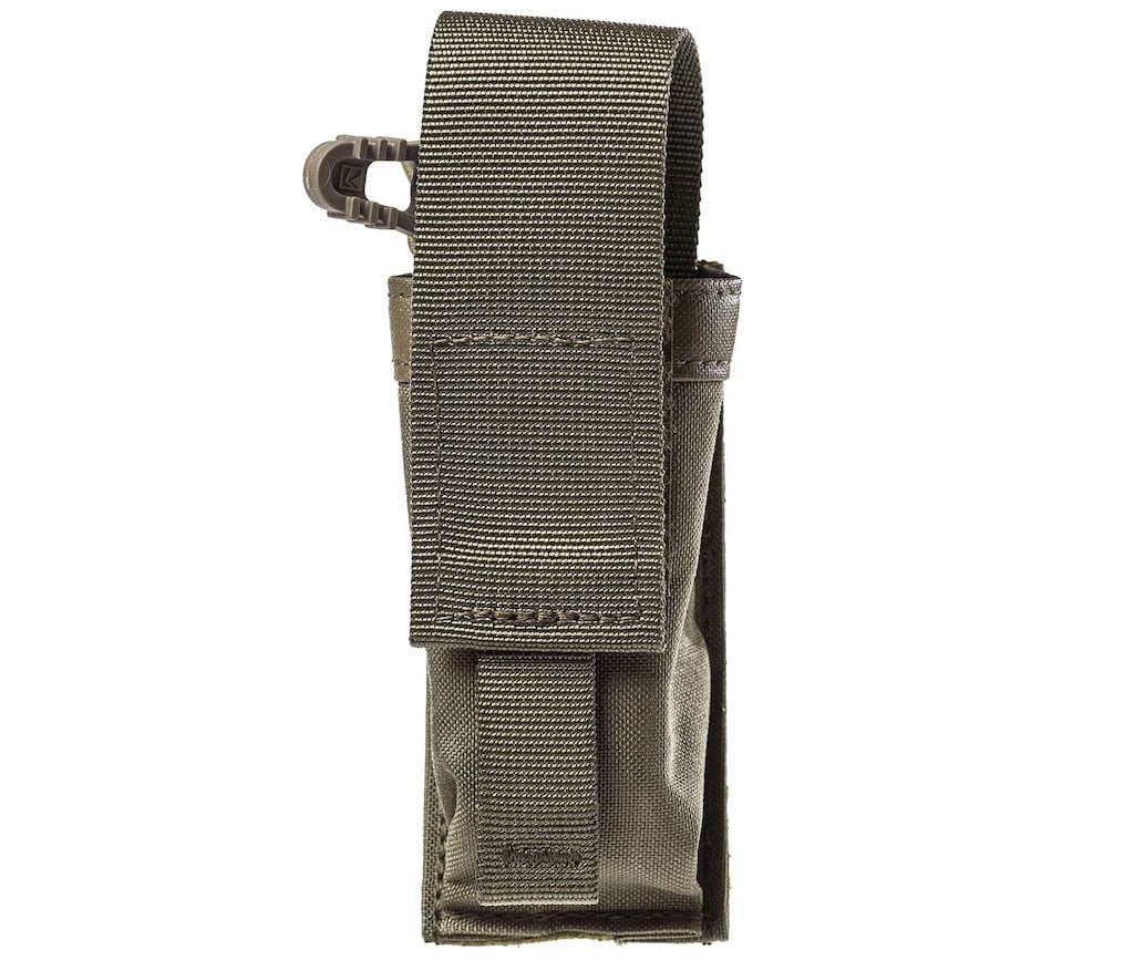 Компактний підсумок кольору Stone Grey, призначений для одного дворядного магазину калібру 9 мм. Виготовлений з поєднання матеріалу Cordura та ламінату MX, який характеризується високою стійкістю до стирання і механічних пошкоджень. Система кріплення MOLLE/PALS дозволяє прикріпити підсумок до жилета або тактичного пояса. Він також підходить для перенесення ліхтарика, мультитула або інших аксесуарів подібних розмірів.