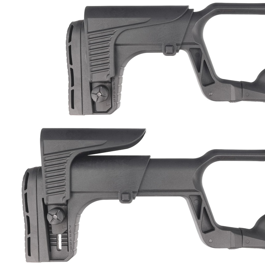 Точність прицілювання в режимі карабіна підвищується телескопічним прикладом TTS (Tactical Telescopic Stock) з можливістю регулювання довжини та висоти щічки. Приклад закінчується гумовою вентильованою п'яткою, що забезпечує комфорт під час прицілювання для стрільби.