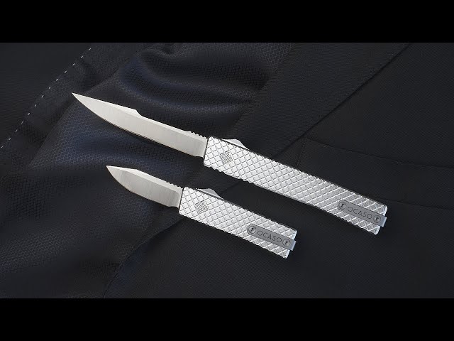 Міцний пружинний ніж типу OTF (Out The Front) розроблений Ендрю Демко. Лезо довжиною 43 мм виготовлено з високоякісної нержавіючої сталі M390, а рукоятка – з легкого та міцного алюмінію 6061-T6. Механізм OTF забезпечує швидке та плавне висунення леза.