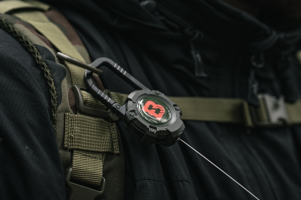 Сталевий карабін, інтегрований в корпус, дозволяє прикріпити ретрактор до петлі на штанах, шлейки рюкзака або іншого елемента спорядження. Мотузка закінчується сталевим кільцем діаметром 33 мм, що дозволяє прикріпити бейдж, ключі або інші дрібні аксесуари.