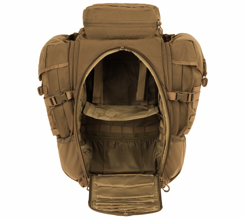 Основне відділення рюкзака оснащене переднім відкриванням на блискавці, що полегшує пакування та швидкий пошук необхідних речей. Всередині знаходиться складана полиця для організації, що дозволяє розділити простір на дві незалежні секції – верхню і нижню. Там також розміщені дві кишені для гідратаційних резервуарів, тримач для радіостанції PRC-117 і численні внутрішні кишені. Стіни відділення оснащені стрічками MOLLE/PALS, що дозволяють кріпити додаткові кишені та аксесуари.