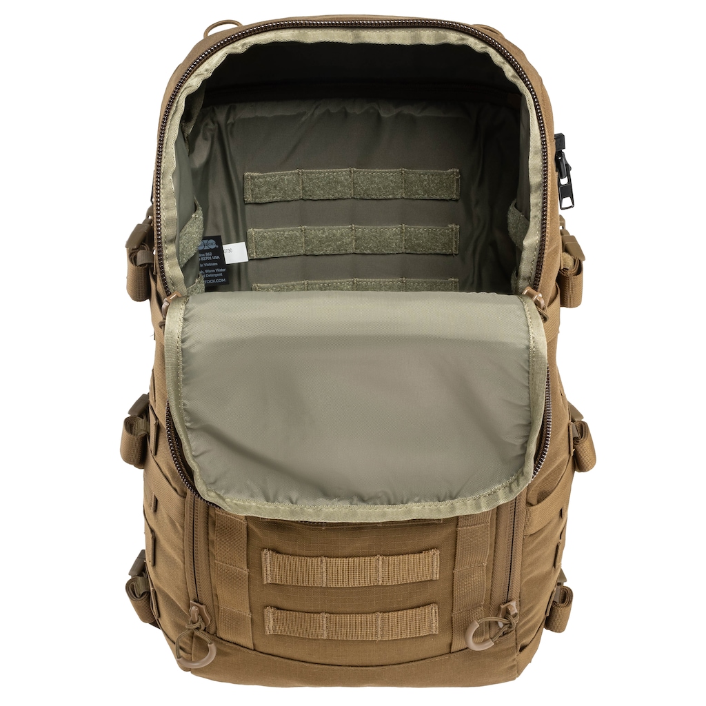 Рюкзак місткістю 32,8 літра кольору Coyote Brown, виготовлений з стійкого до зносу та пошкоджень нейлону 500D, посиленого плетінням Rip-Stop. Модель була розроблена для монтажу на каркасі Mission Frame, що дозволяє краще розподілити вантаж і забезпечує більшу стабільність при великих навантаженнях. Рюкзак також можна носити окремо, і тоді він має струнку, низькопрофільну форму та компактний профіль. Він особливо добре підходить для динамічних дій, що вимагають частої зміни конфігурації переносного спорядження.