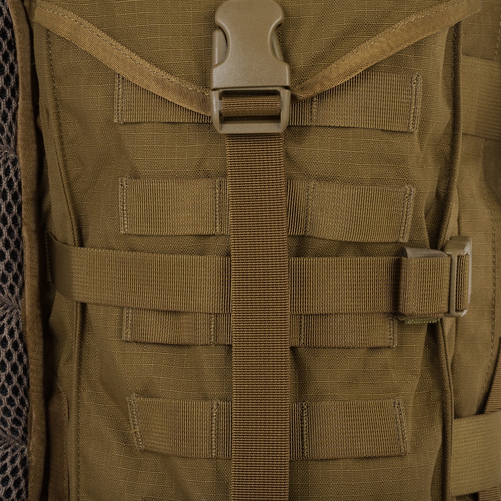 У моделі використані стрічки системи MOLLE товщиною всього 10 мм, які дозволяють прикріпити додаткове спорядження. Вони забезпечують повну функціональність монтажної системи, а завдяки зменшеним розмірам мінімізують вагу рюкзака. Завдяки їм рюкзак можна легко адаптувати до індивідуальних потреб користувача.