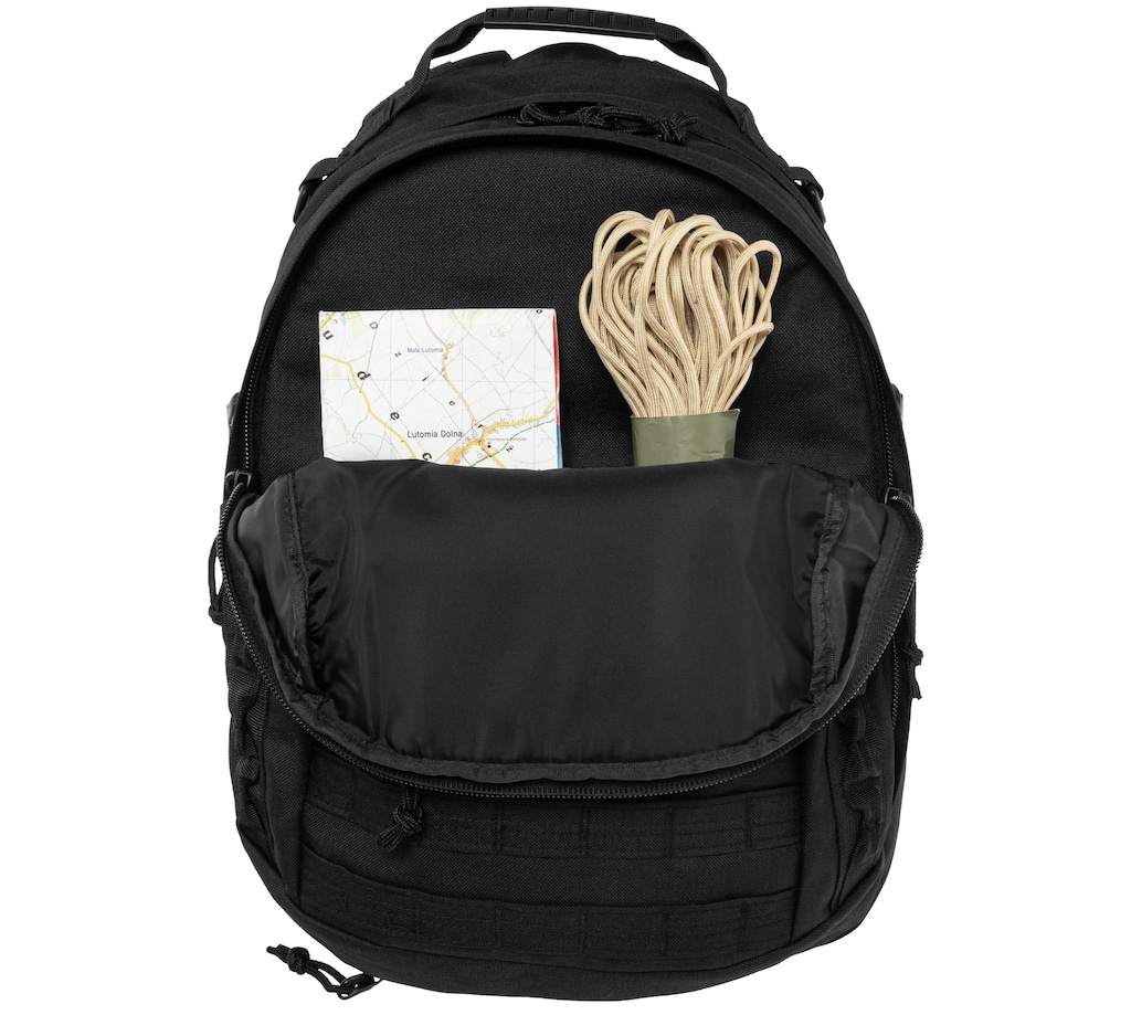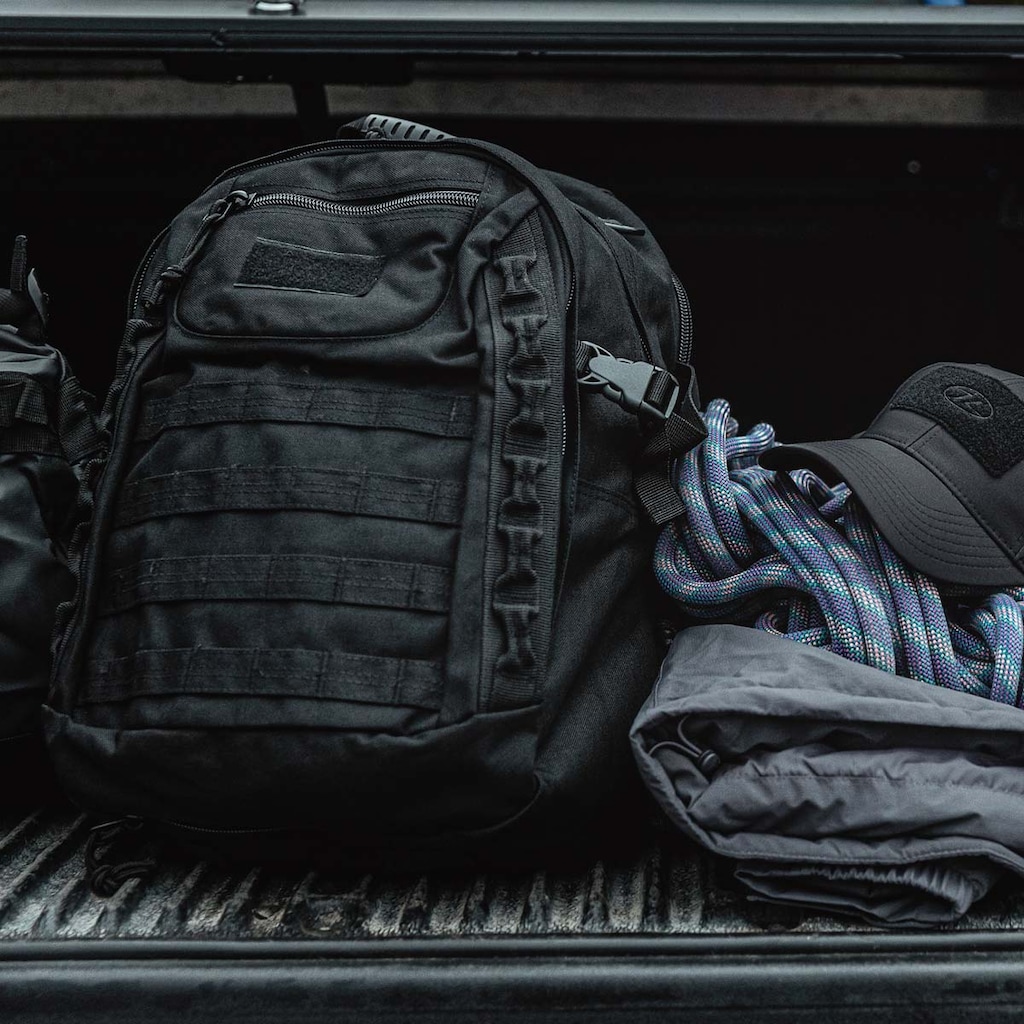 Рюкзак місткістю 30 л чорного кольору. Виготовлений з міцного до розривів нейлону 1000D XTP, який додатково покритий PU-покриттям, що захищає від вологи. Підійде для тактичного та виживального використання, а також для щоденного користування.