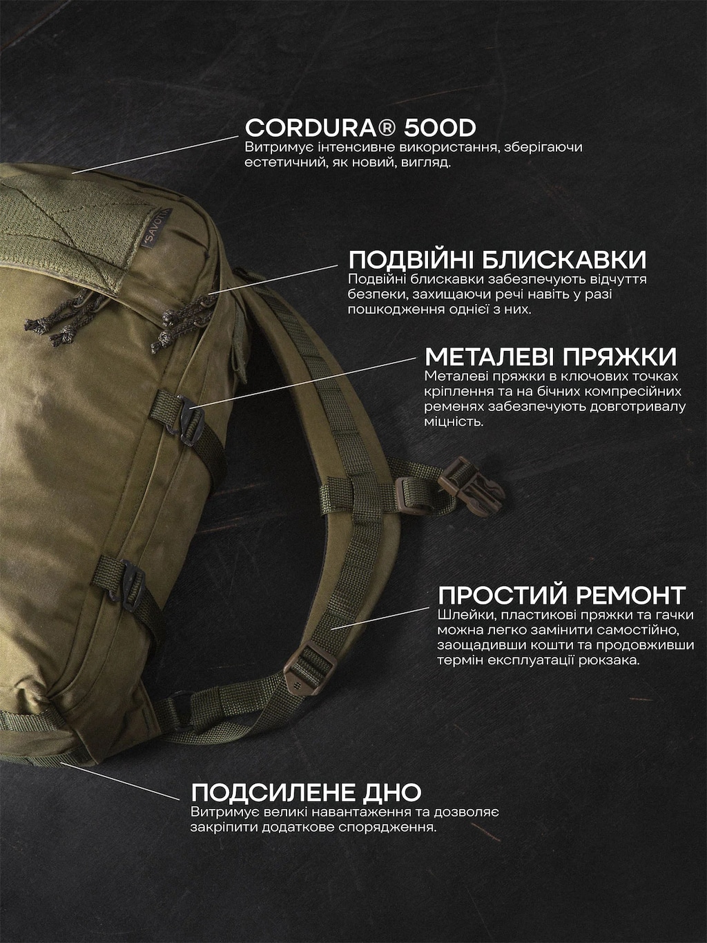 - виготовлений з матеріалу Cordura 500D
