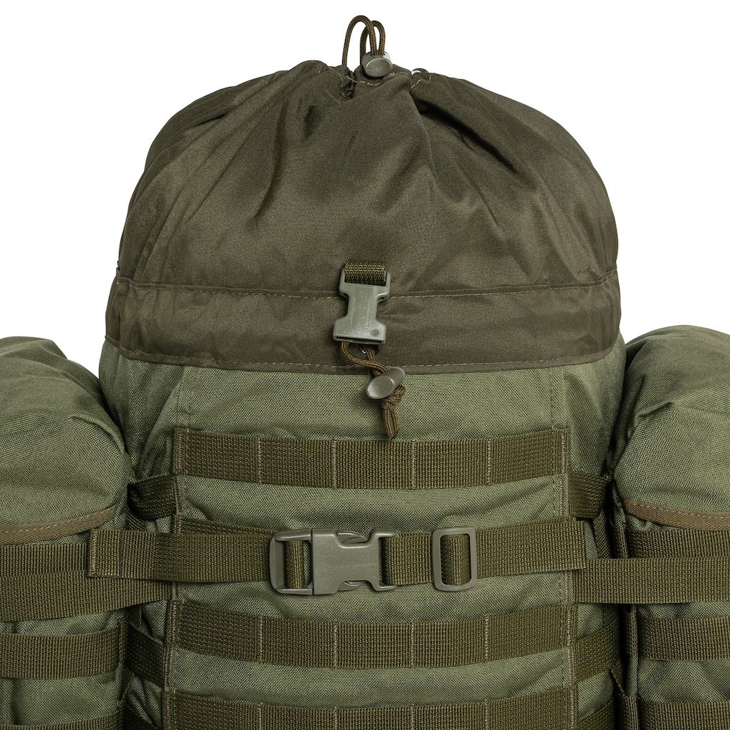 Великий військовий рюкзак з місткістю 65 літрів в кольорі оливи. Виготовлений з дуже міцної та стійкої до розривів Cordura. Оснащений регульованою та комфортною підвісною системою, численними кишенями та системою кріплення MOLLE/PALS, а вся конструкція зміцнена швами з ригельною застібкою. Рюкзак відмінно підійде для довгих походів і екскурсій, а також для тактичних дій.