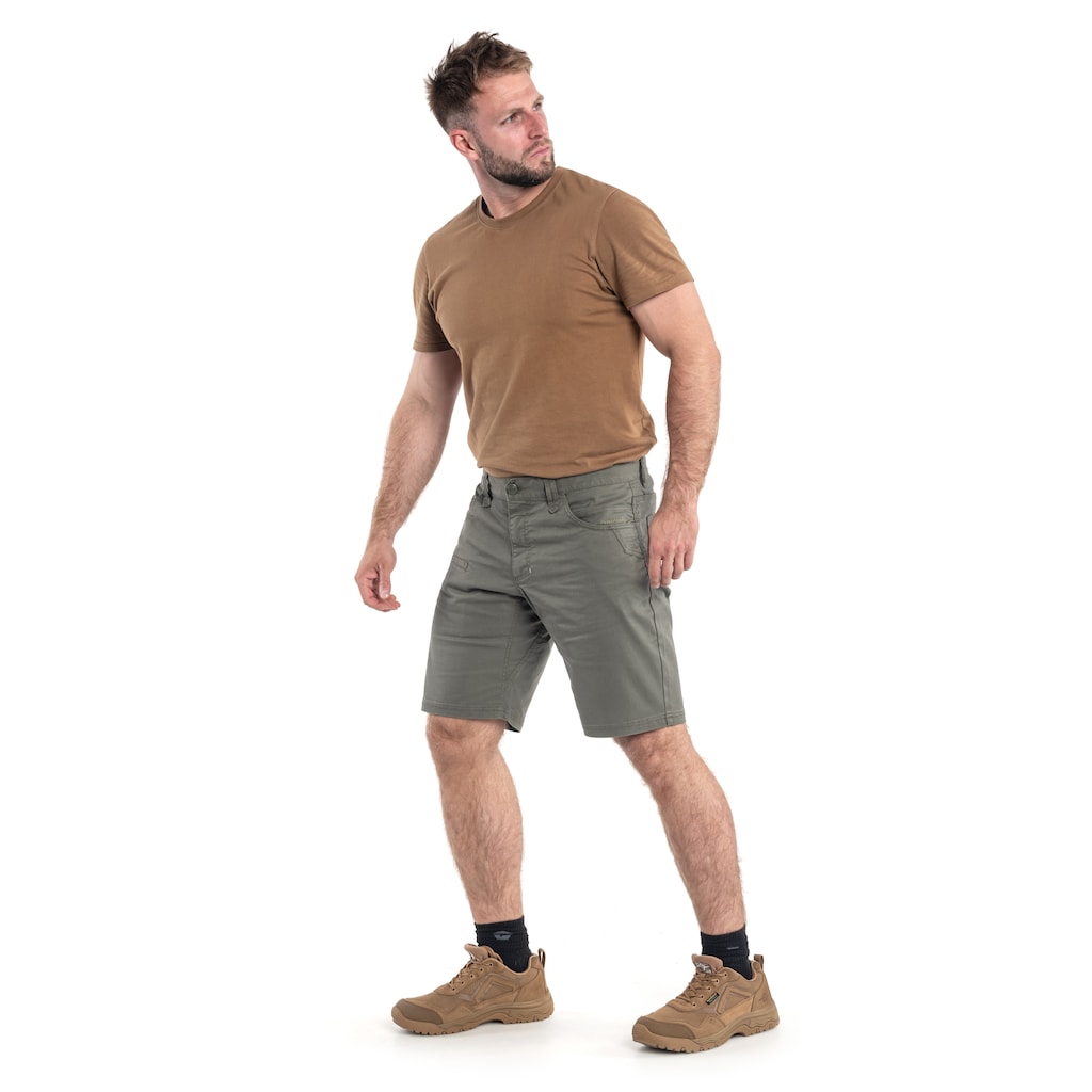 Зручні, практичні шорти кольору Cinder Grey зшиті з матеріалу Twill, стійкого до розривів і протирань, який є сумішшю 65% бавовни та 35% поліестеру. Матеріал є витривалим, легким, повітропроникним і сохне швидше, ніж матеріал зі 100% бавовни. Класичний, приталений крій не обмежує рухів. Підійдуть як для повсякденного використання, так і для стрілецьких тренувань.