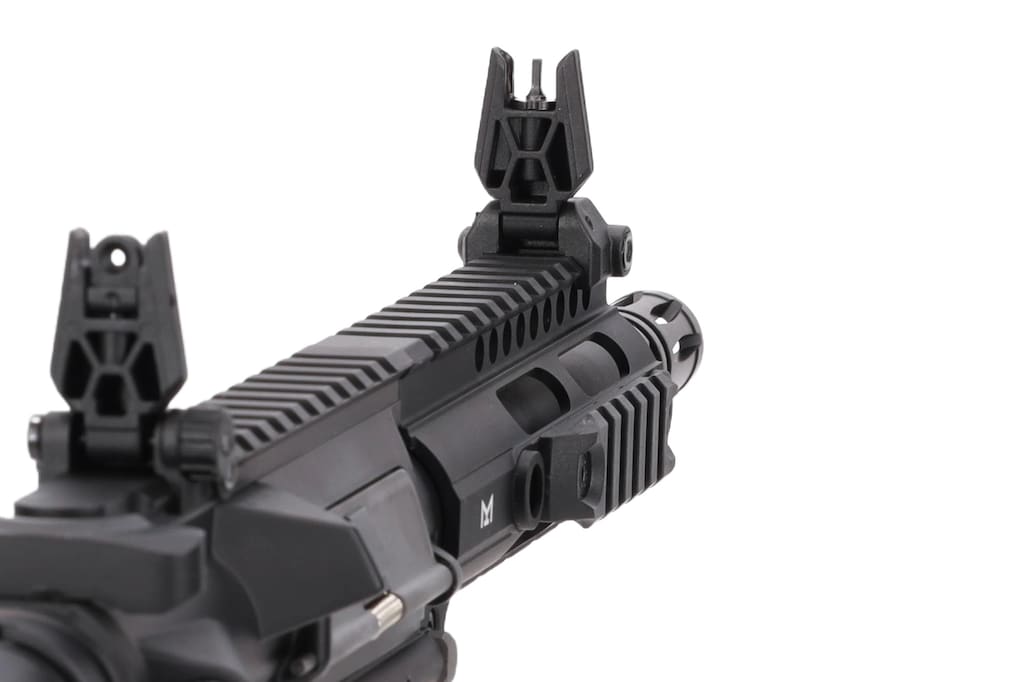 У репліці використано цівку в системі M-LOK та рейки RIS, що підвищує універсальність кріплення обладнання. Крім того, гвинтівка оснащена також складаними прицільними приладами, а ствол закінчено дульним пристроєм на різьбленні 14 мм CCW, що дозволяє встановлювати глушники або інші аксесуари.