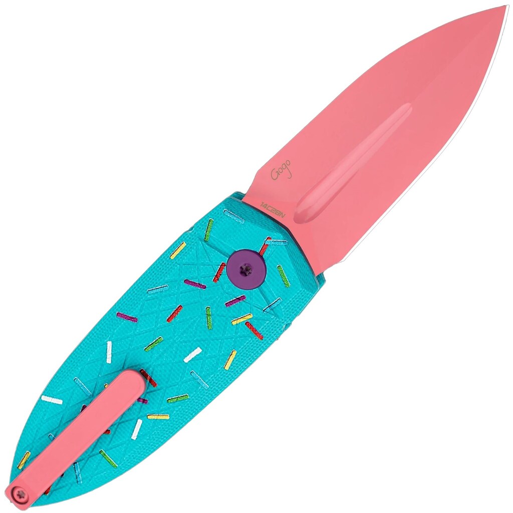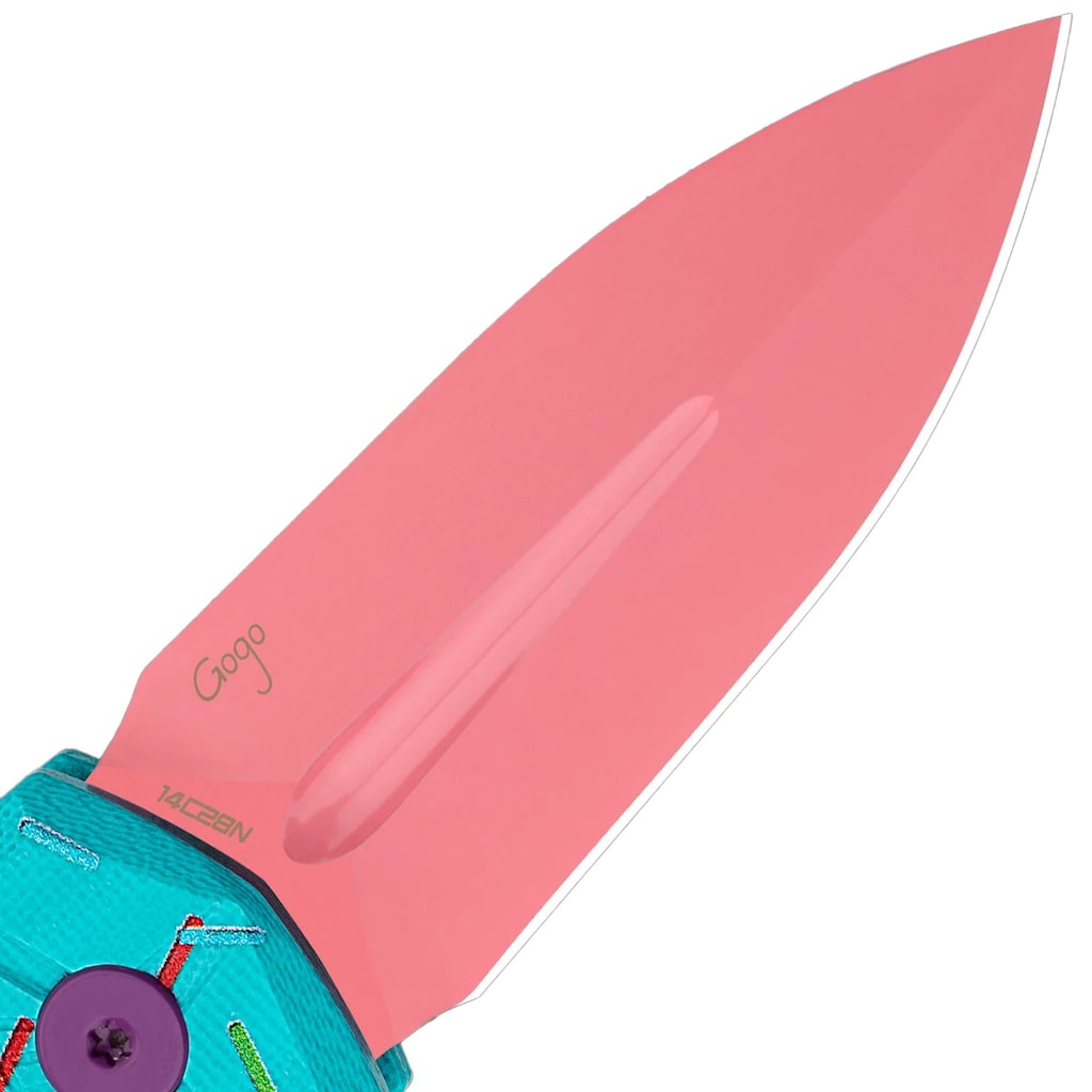 Лезо ножа виготовлено з нержавіючої сталі 14C28N, розробленої шведською компанією Sandvik. Хімічний склад сировини оптимізовано таким чином, щоб досягти високої твердості. Відповідний вміст азоту дозволяє зберігати стійкість до корозії та підвищує міцність кромки. Вуглець сприяє отриманню хороших ріжучих властивостей, а хром забезпечує високу стійкість до іржі та окислення. Поверхня леза покрита рожевий покриттям.