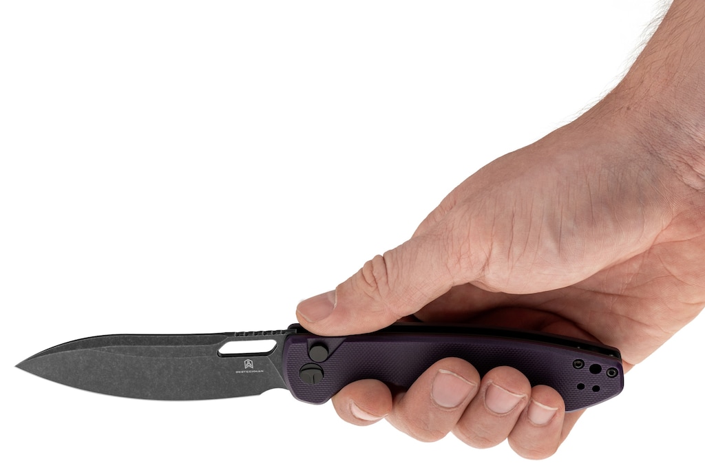 Облицювання рукоятки виконано з ламінату G10 у кольорі Purple. Використаний матеріал характеризується низькою вагою при збереженні високої стійкості до пошкоджень, вологи, змін температури, а також більшості розчинників і кислот. Ергономічна форма облицюваннь в поєднанні з їх текстурованою поверхнею забезпечує надійний і безпечний хват.