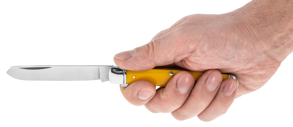 Ніж оснащено класичним блокуванням типу Slip Joint, яке використовує натискну пружину для утримання леза у відкритій або закритій позиції. Цей механізм не блокує лезо жорстко, але забезпечує відповідний опір під час роботи, що сприяє безпечному та контрольованому використанню.