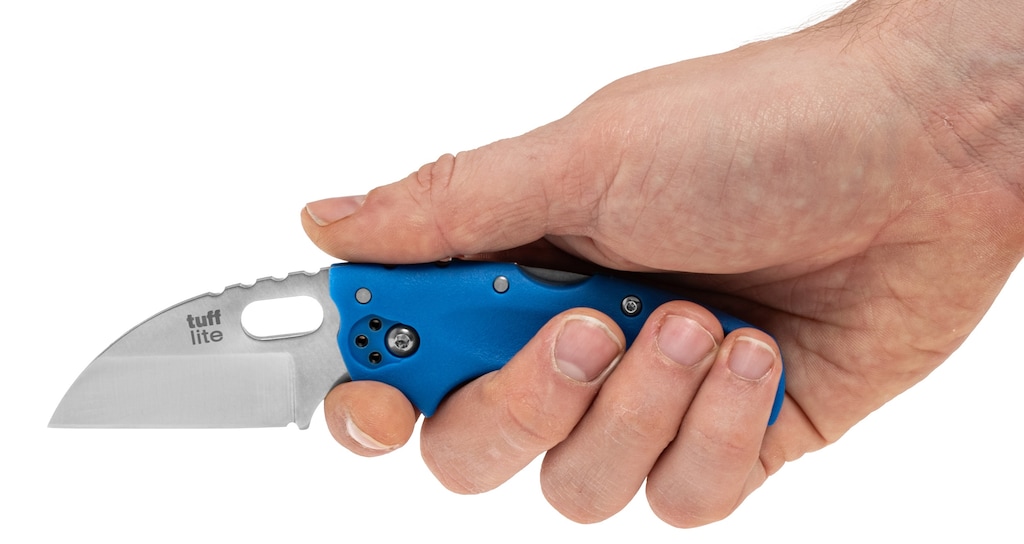 Клинок з профілем Sheepsfoot має 63 мм довжини і 2,75 мм товщини. Характеризується гладким ріжучим краєм, виконаним високим увігнутим шліфуванням. Лезо оброблено методом сатинування, що надає йому напівматову поверхню, забезпечуючи естетичний вигляд і підвищуючи стійкість до подряпин. На обусі клинка, в місці опори великого пальця, розміщено насічку (jimping), яка підвищує контроль над інструментом під час роботи.
