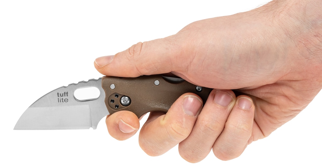 Складаний ніж призначений для повсякденного носіння (EDC). Клинок з профілем Sheepsfoot виконаний з японської нержавіючої сталі AUS-8A, яка характеризується відмінною стійкістю до корозії. Гладке лезо виконано методом сатинування. Рукоятка у кольорі Dark Earth виконана з композиту Griv-Ex з протиковзкою текстурою. Ніж відкривається за допомогою отвору під великий палець, а блокування Tri-Ad Lock забезпечує безпеку використання.