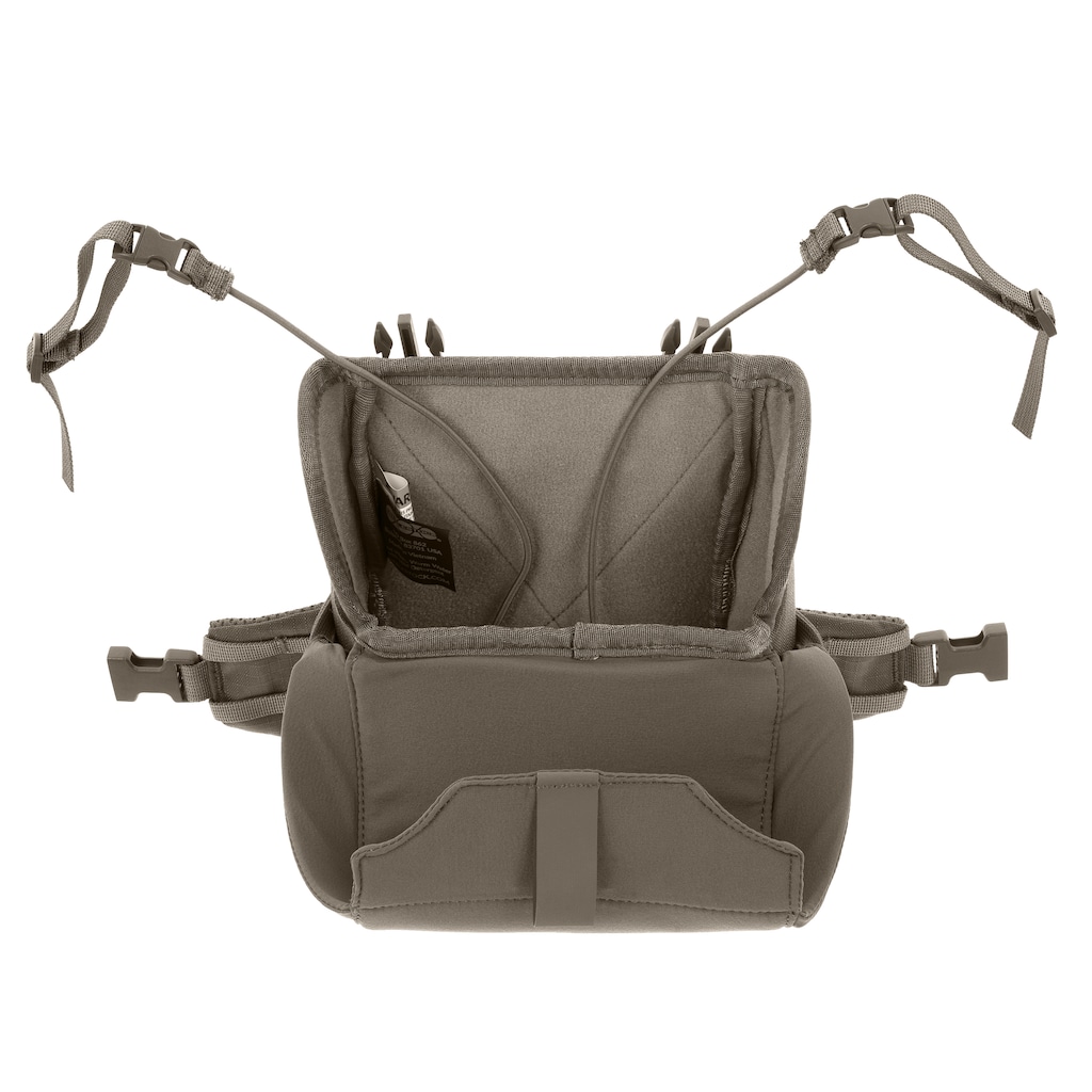 Сумка з відділенням, призначеним для бінокля, оснащена знімною, регульованою системою носіння, дозволяє зручно переносити її на грудях. Стрічки в системі MOLLE дозволяють розширити сумку додатковими кишенями та аксесуарами. Відділення з внутрішніми розмірами 23 x 14 x 6 см з магнітною застібкою, передня кишеня на блискавці та бічні кишені з еластичного матеріалу забезпечують місце для необхідного спорядження.
