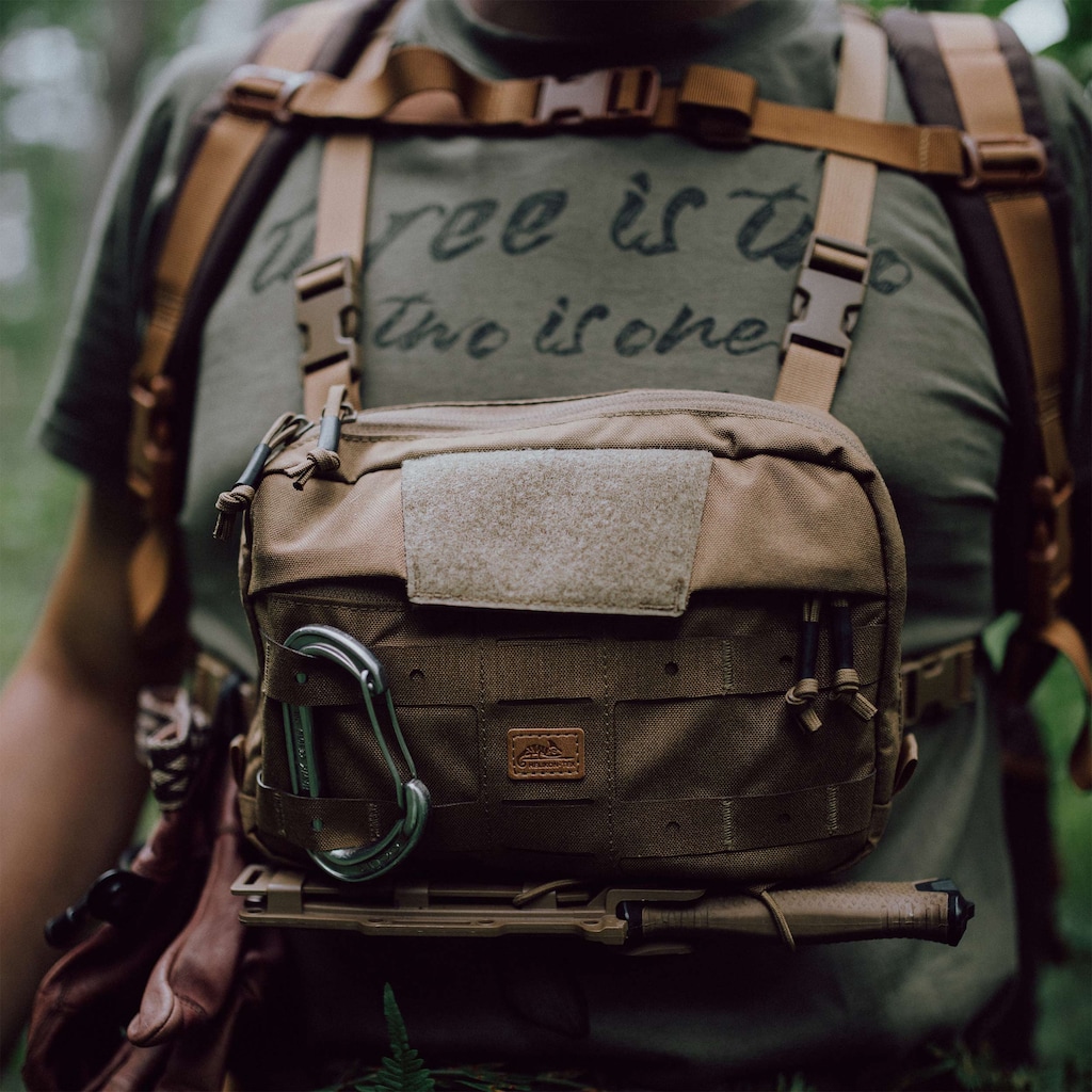 Сумка на груди дійсно дуже високої якості. Виконання надійне, а комфорт носіння залишається на високому рівні навіть протягом тривалого часу. У сумці достатньо місця для всіх дрібниць, які корисно тримати під рукою. Особливо корисна поверхня Molle спереду — вона дозволяє легко чіпляти додаткові аксесуари. Я сам додав підсумок Helikon для радіостанції, і все чудово працює та виглядає дуже естетично.