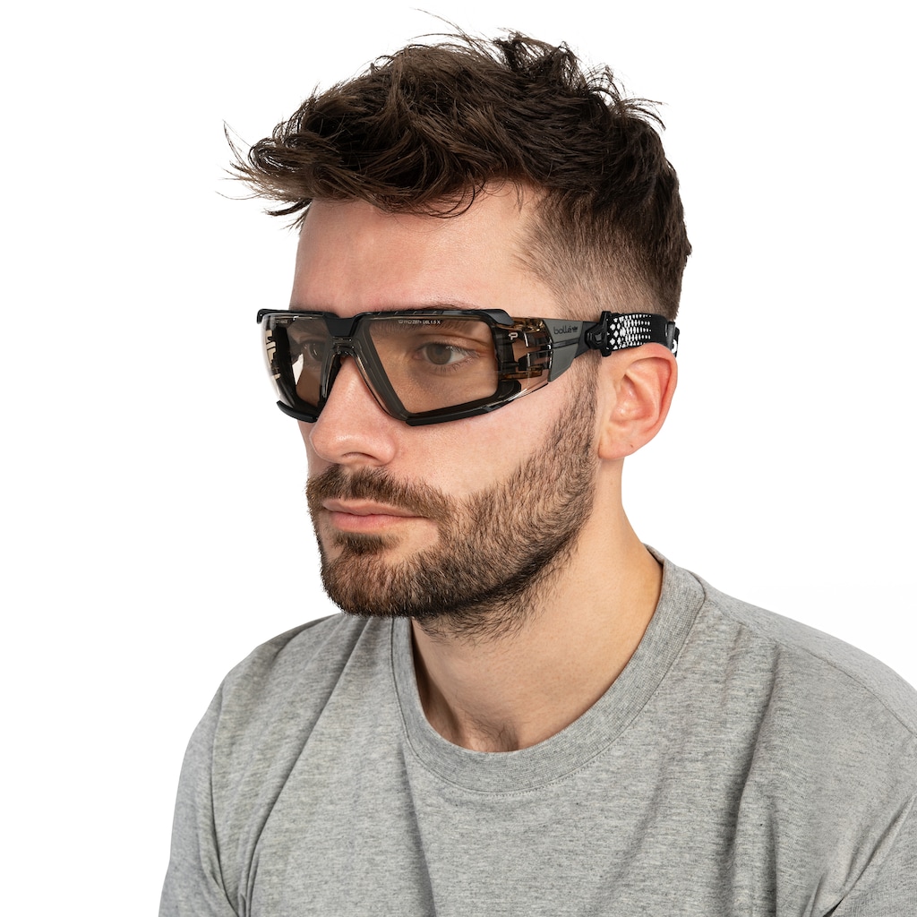 Ергономічно профільовані дужки фіксують окуляри в відповідному положенні, запобігаючи їхньому зісковзуванню. Зроблена з пружинної піни вставка для ущільнення забезпечує стабільне прилягання до обличчя, захищаючи від проникнення забруднень, пилу чи води.