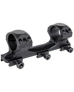 2. Цілісна збірка – Нижні половинки кілець і основа, яка кріпиться до рейки болтами, утворюють єдине ціле, виготовлене з одного шматка металу. Ці типи кріплень зазвичай використовуються на середньо- та високопотужних підпружинених мушках, оскільки вони охоплюють рейку або фрезу мушки по всій поверхні, забезпечуючи набагато міцніший затиск. Це гарантує, що кронштейн разом з прицілом не рухається вздовж рейки, що запобігає зміщенню прицілу.